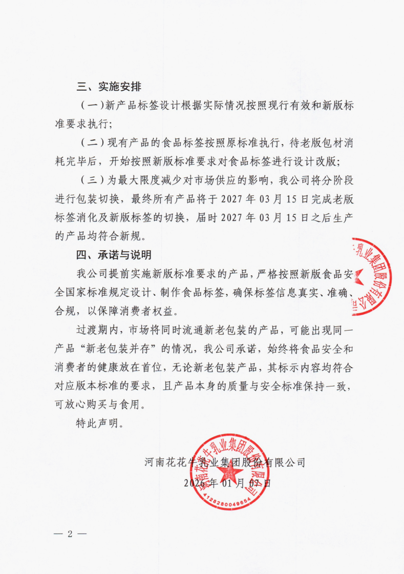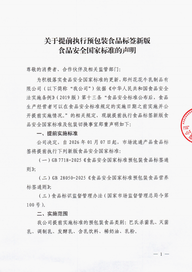 關(guān)于提前執(zhí)行預(yù)包裝食品標簽新版食品安全國家標準的聲明